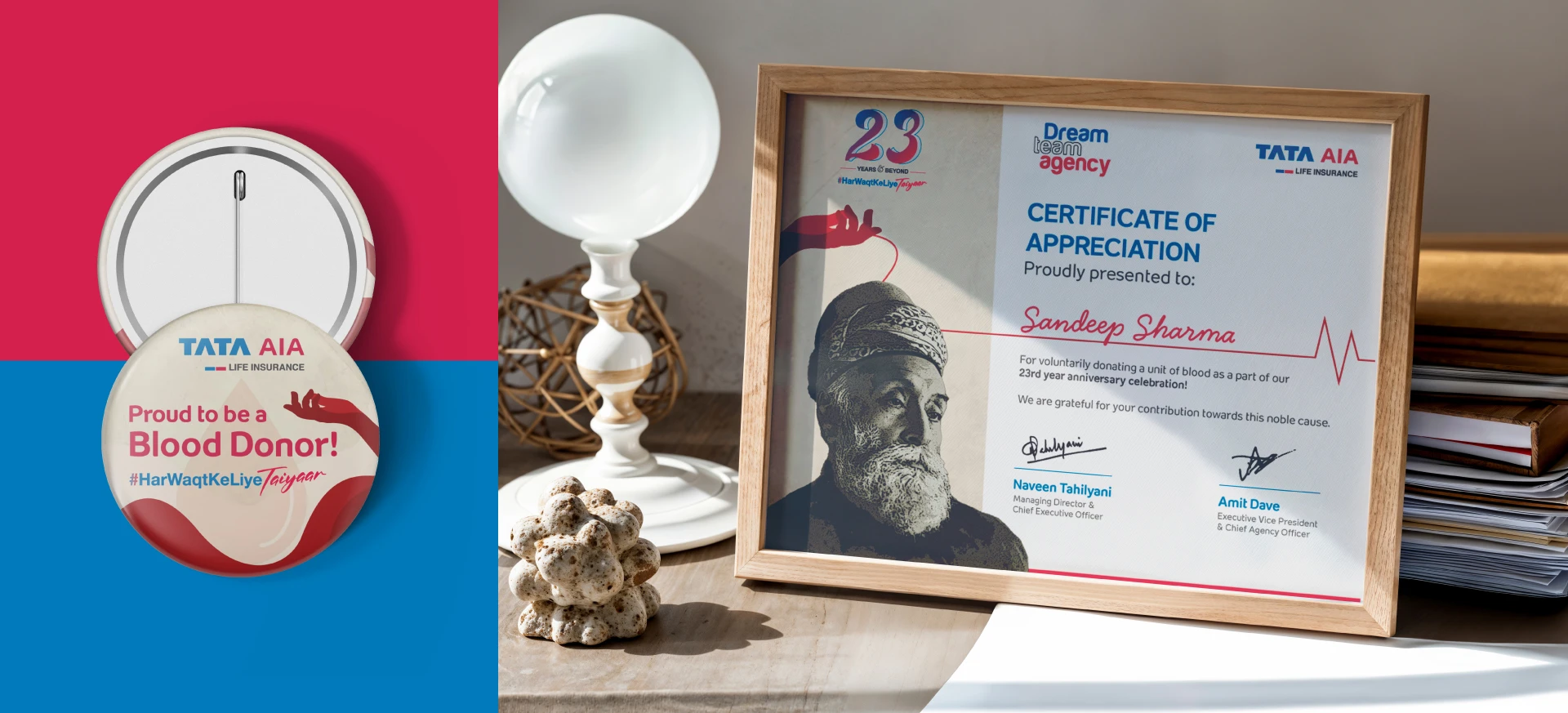 We built a campaign to send wishes to TATA AIA’s ambassador—cue proud employees and flying slogans.