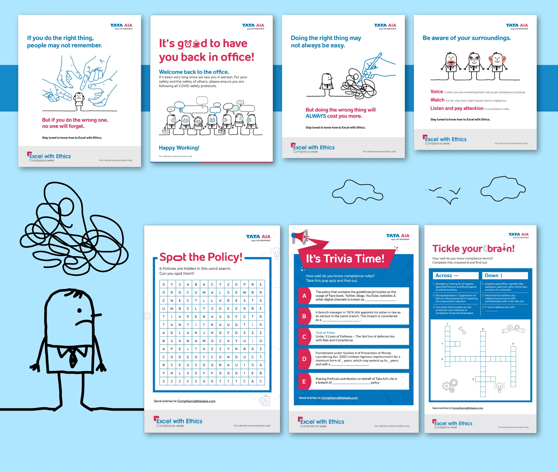 Scope: Internal Campaigns, Employee Engagement Design, Mascot Development, Campaign Visual Systems, Emailer Design, Print Collaterals, HR Comms, Gamified Learning Tools